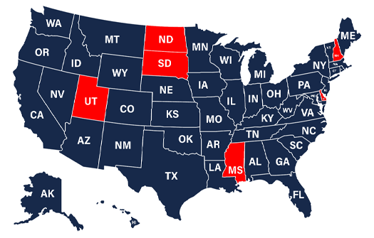 North Dakota - South Dakota - Mississippi - New Hampshire - Delaware- Utah